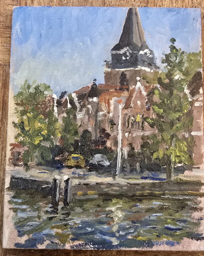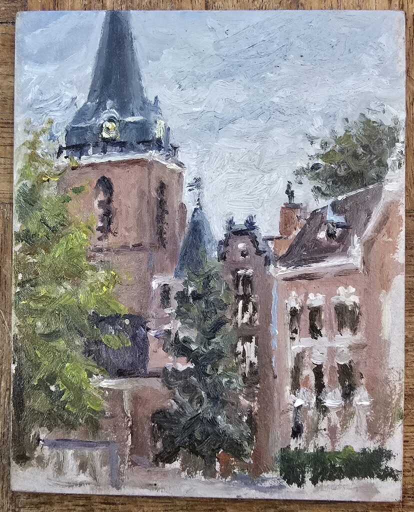 Marnix Hoogendoorn Haven Woerden 10 x 13 cm Olie Verf op Paneel Marnix Hoogendoorn Kerk Woerden 10 x 13 cm Olie verf op Paneel